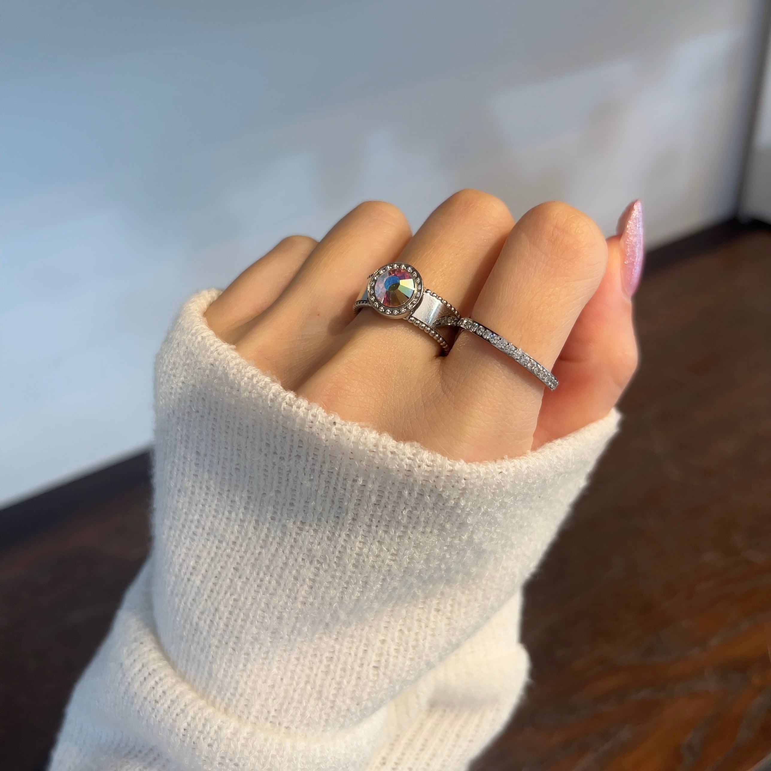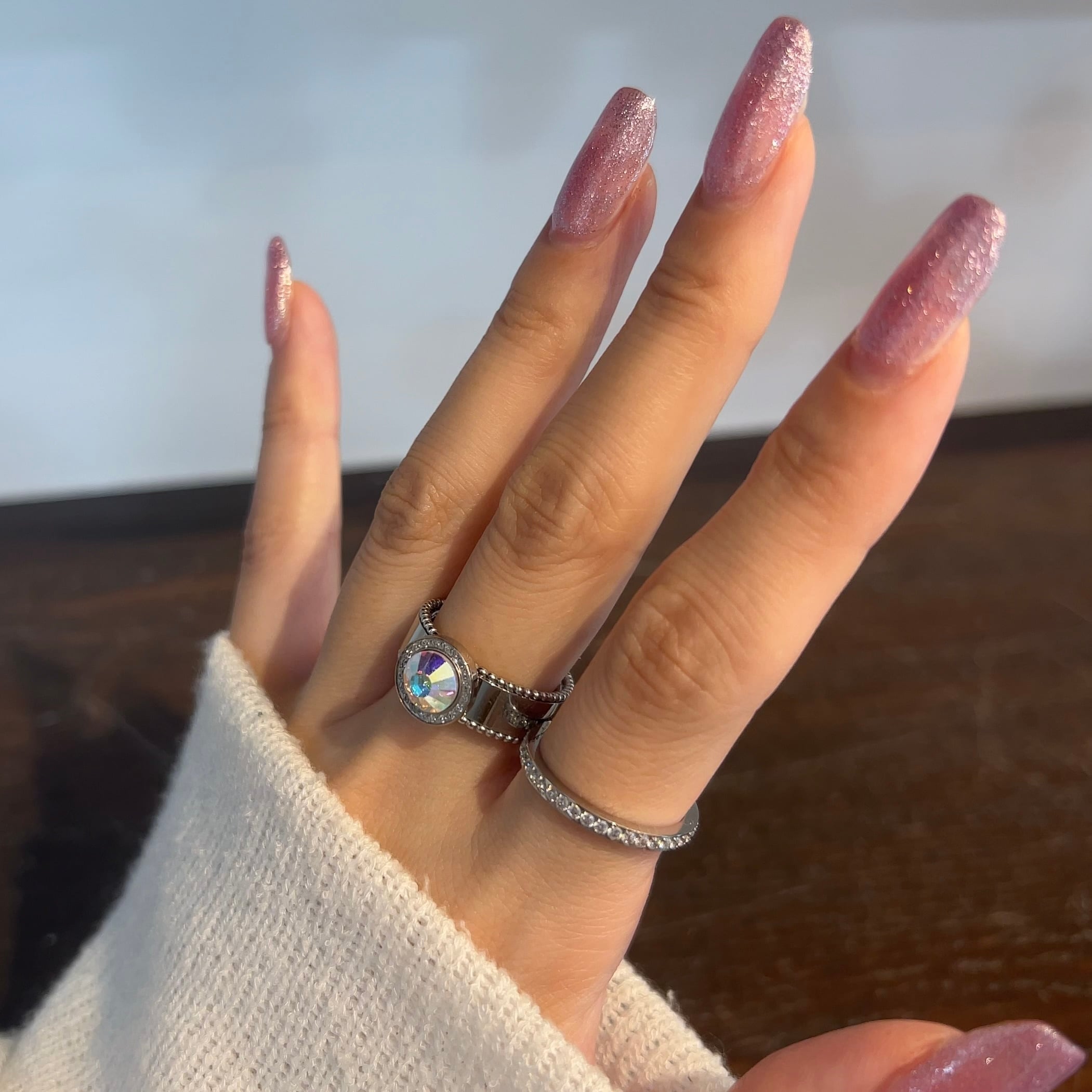 繊細なミル打ちが施されたインターチェンジャブルリング。