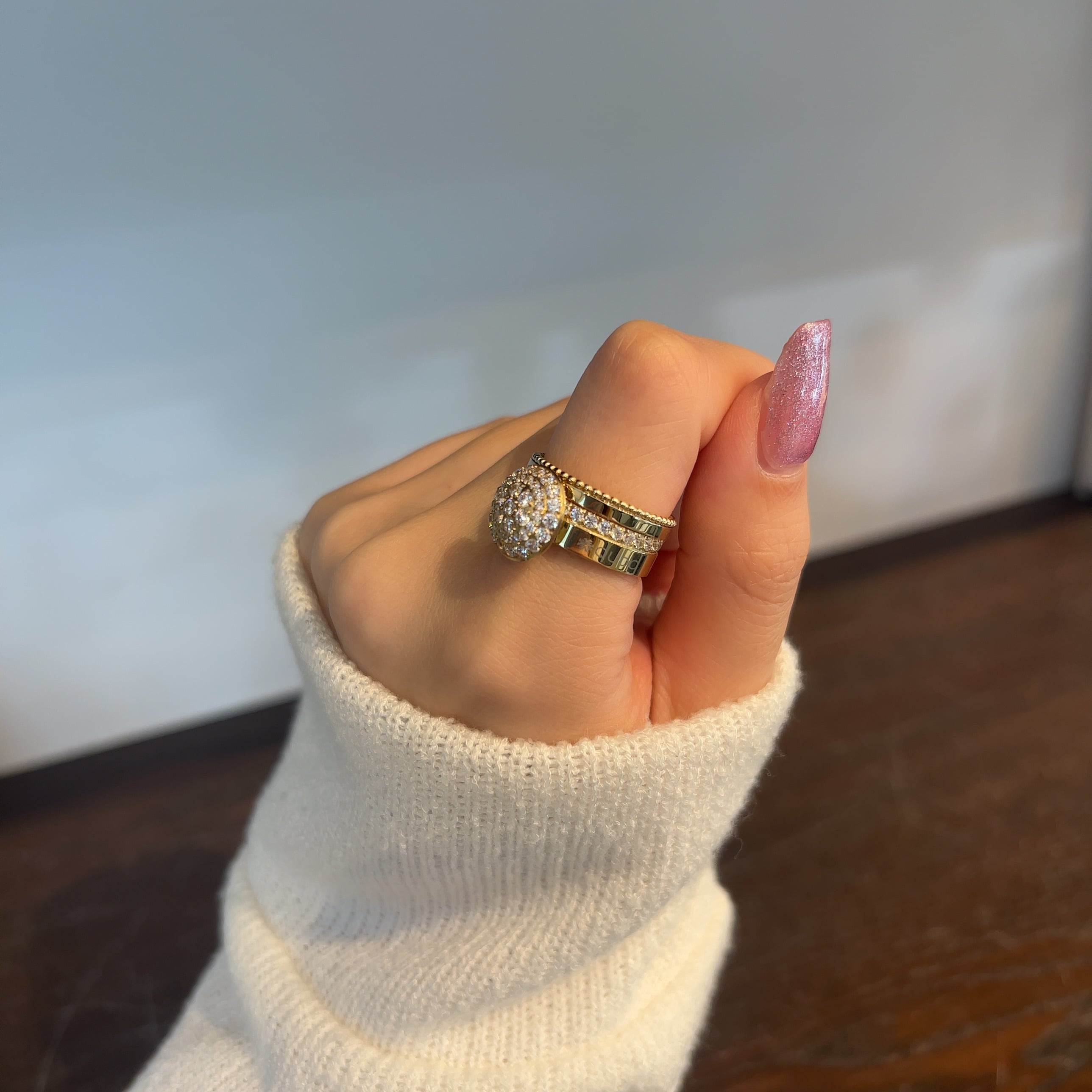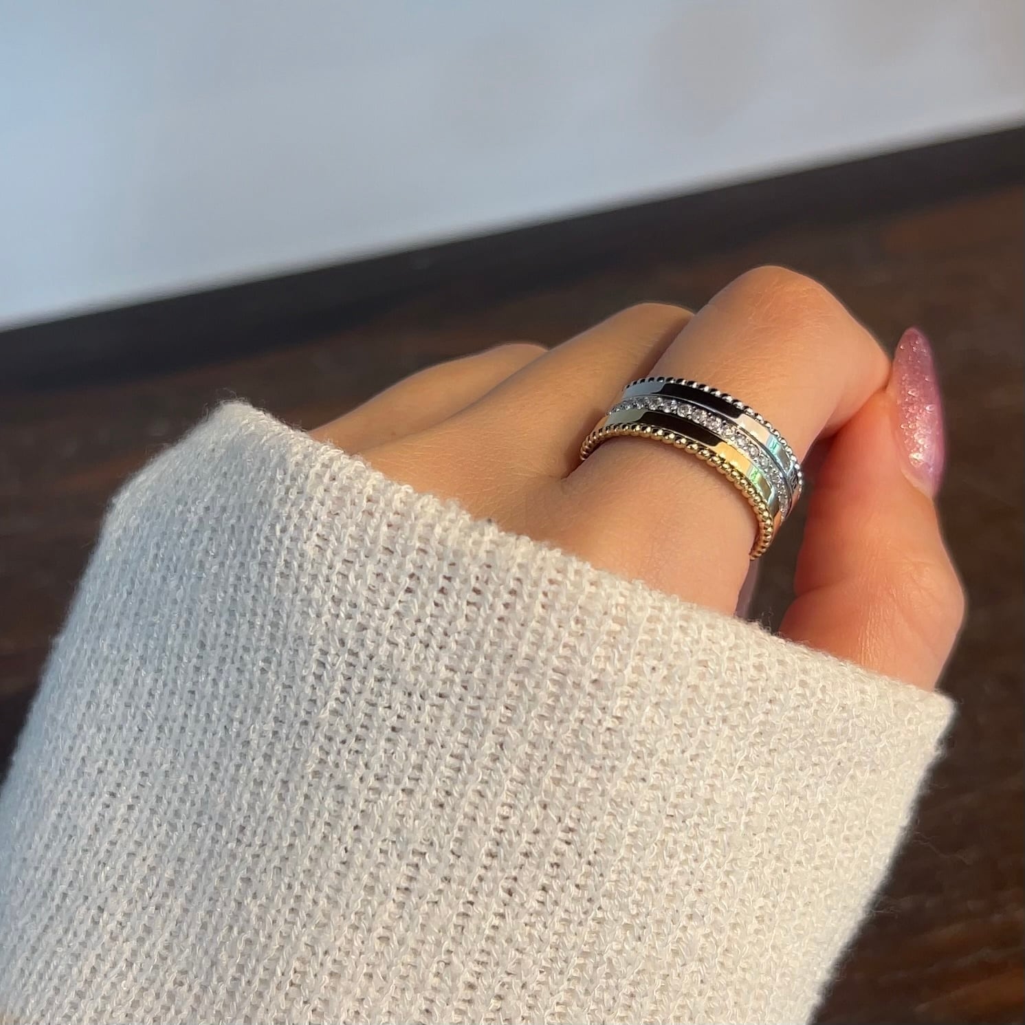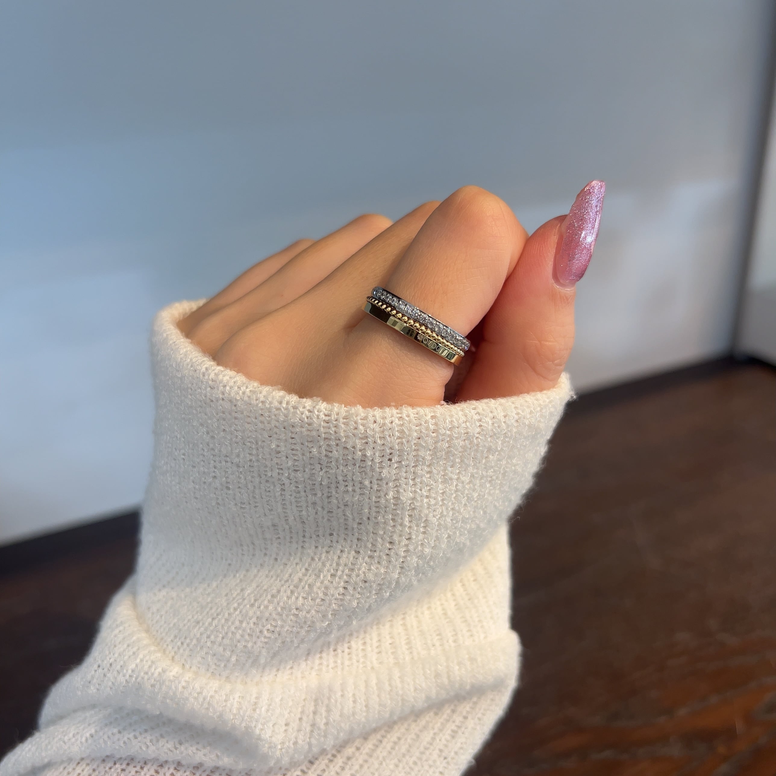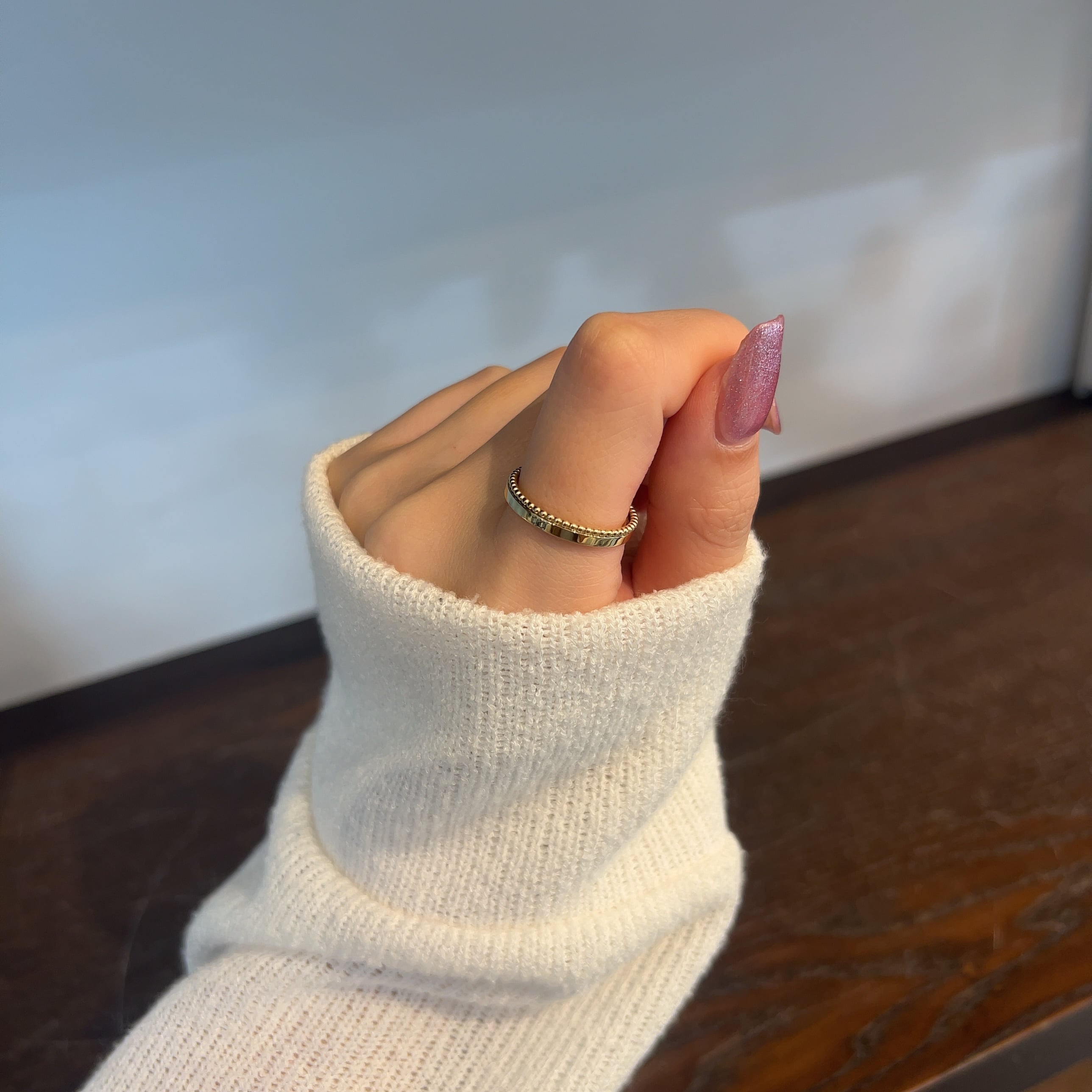 繊細なミル打ちが施されたリング。