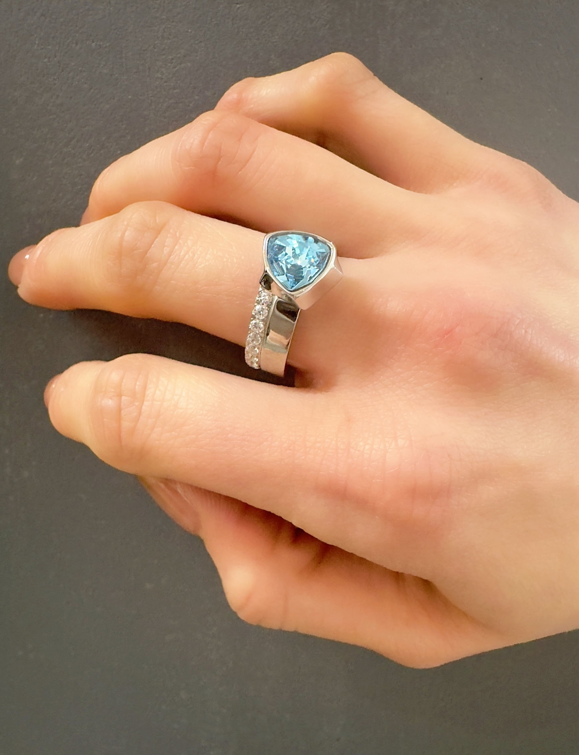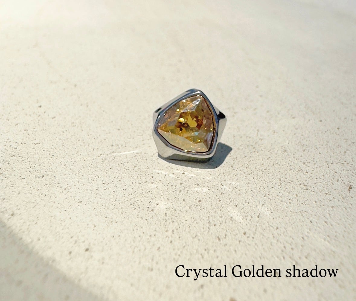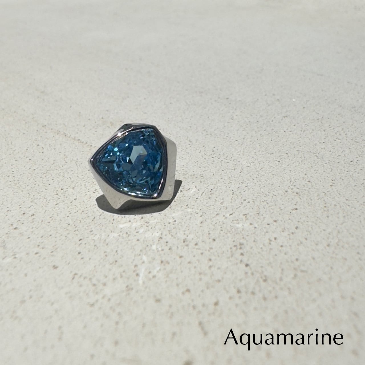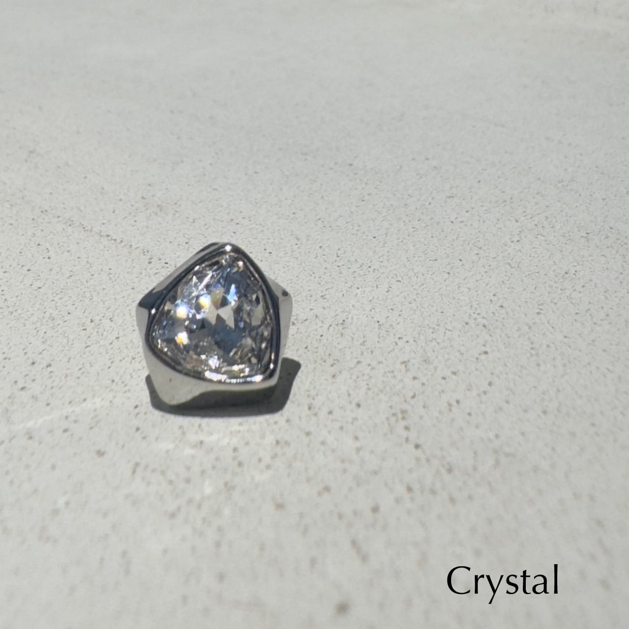 シャープな三角フォルムに、奥行きのあるクリスタルの輝きを閉じ込めた「Triangolo」。
