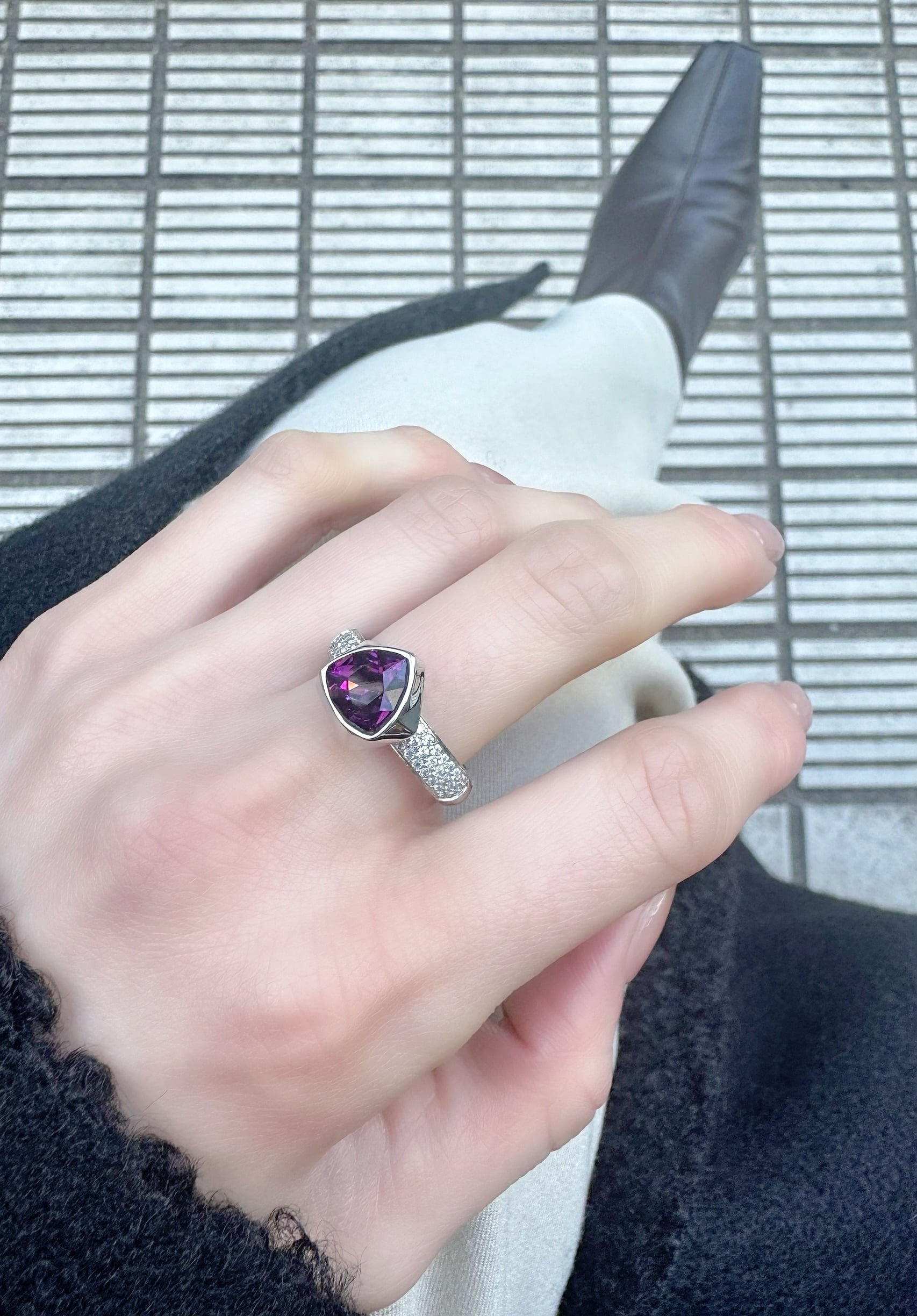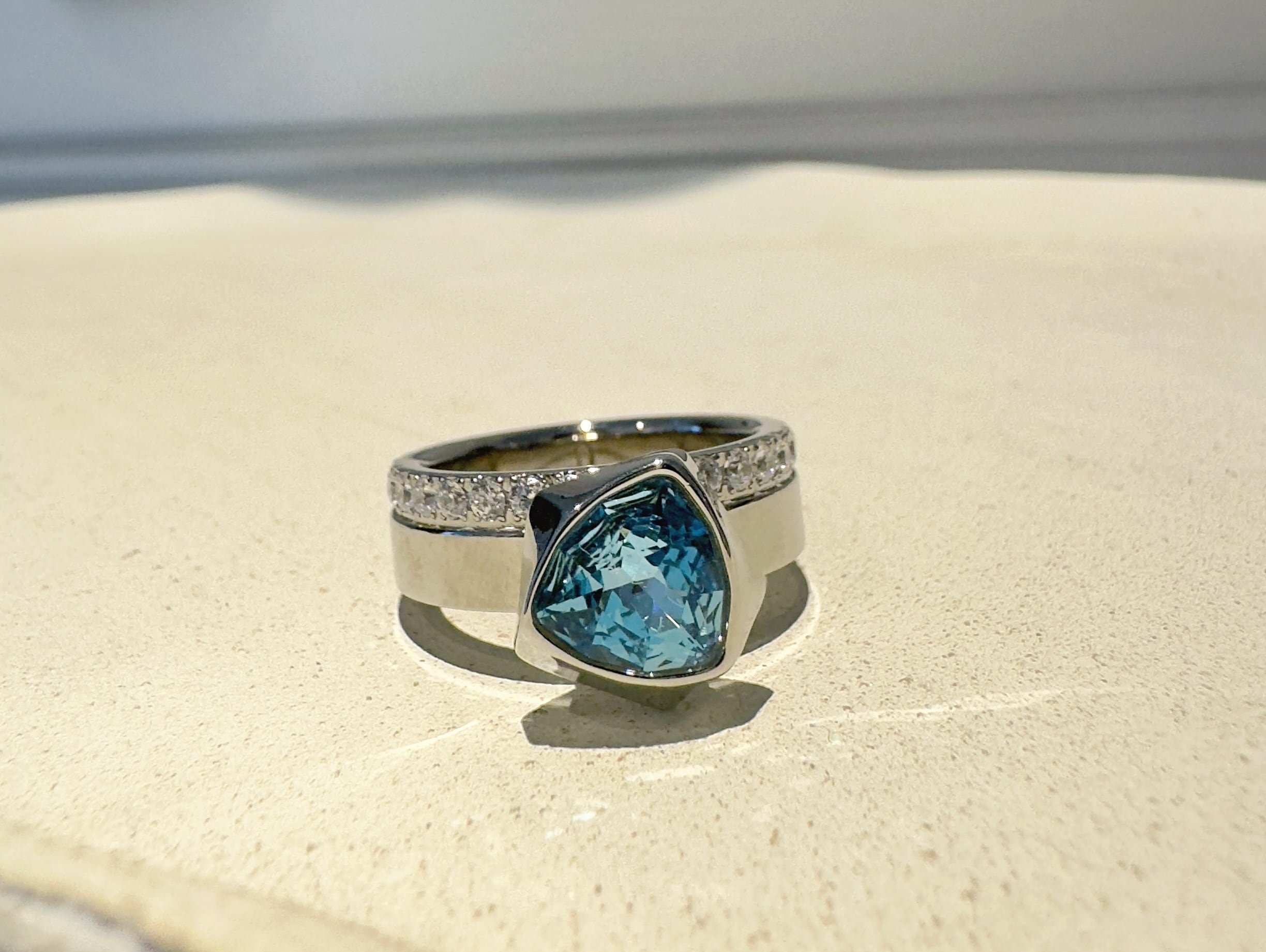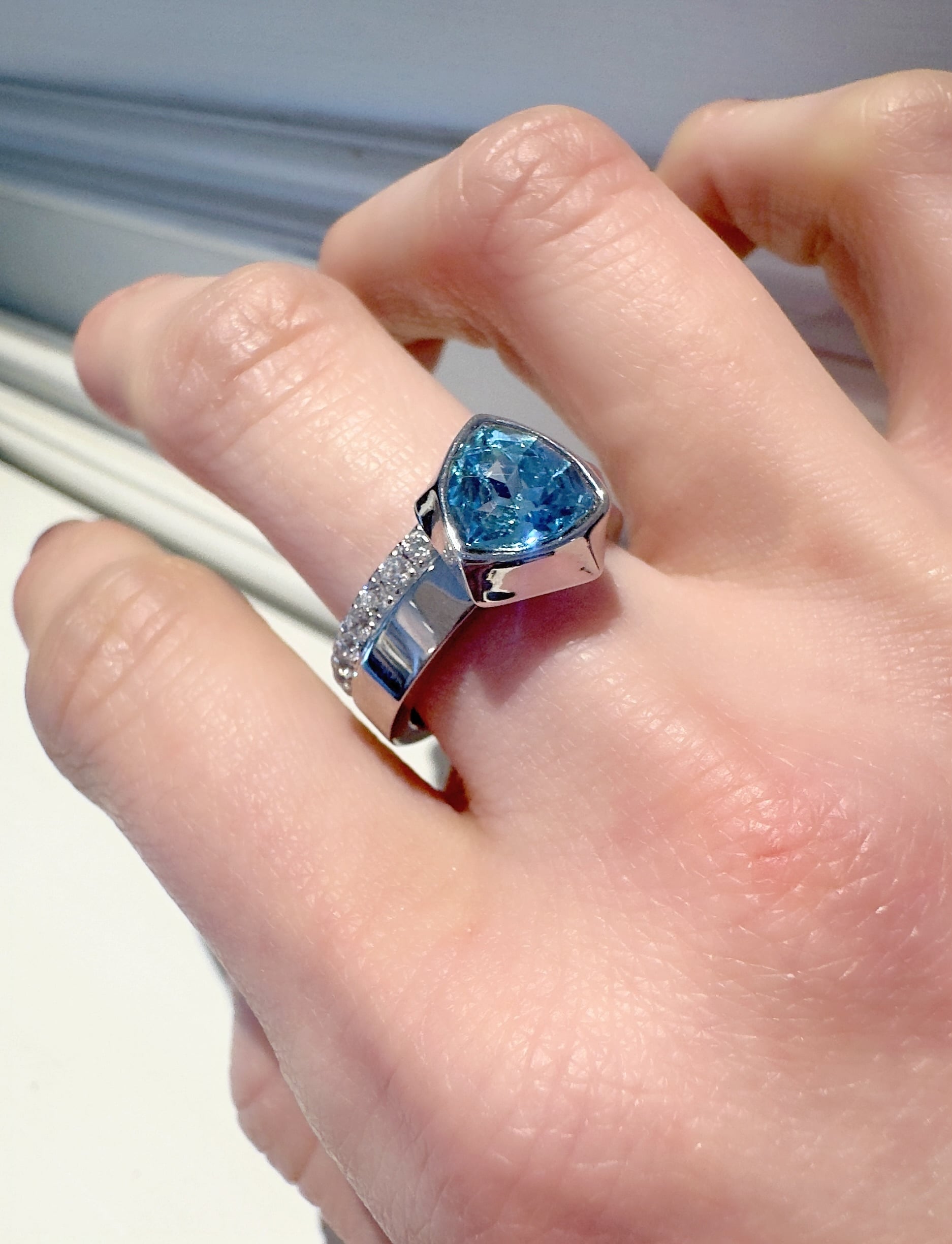 シャープな三角フォルムに、奥行きのあるクリスタルの輝きを閉じ込めた「Triangolo」。