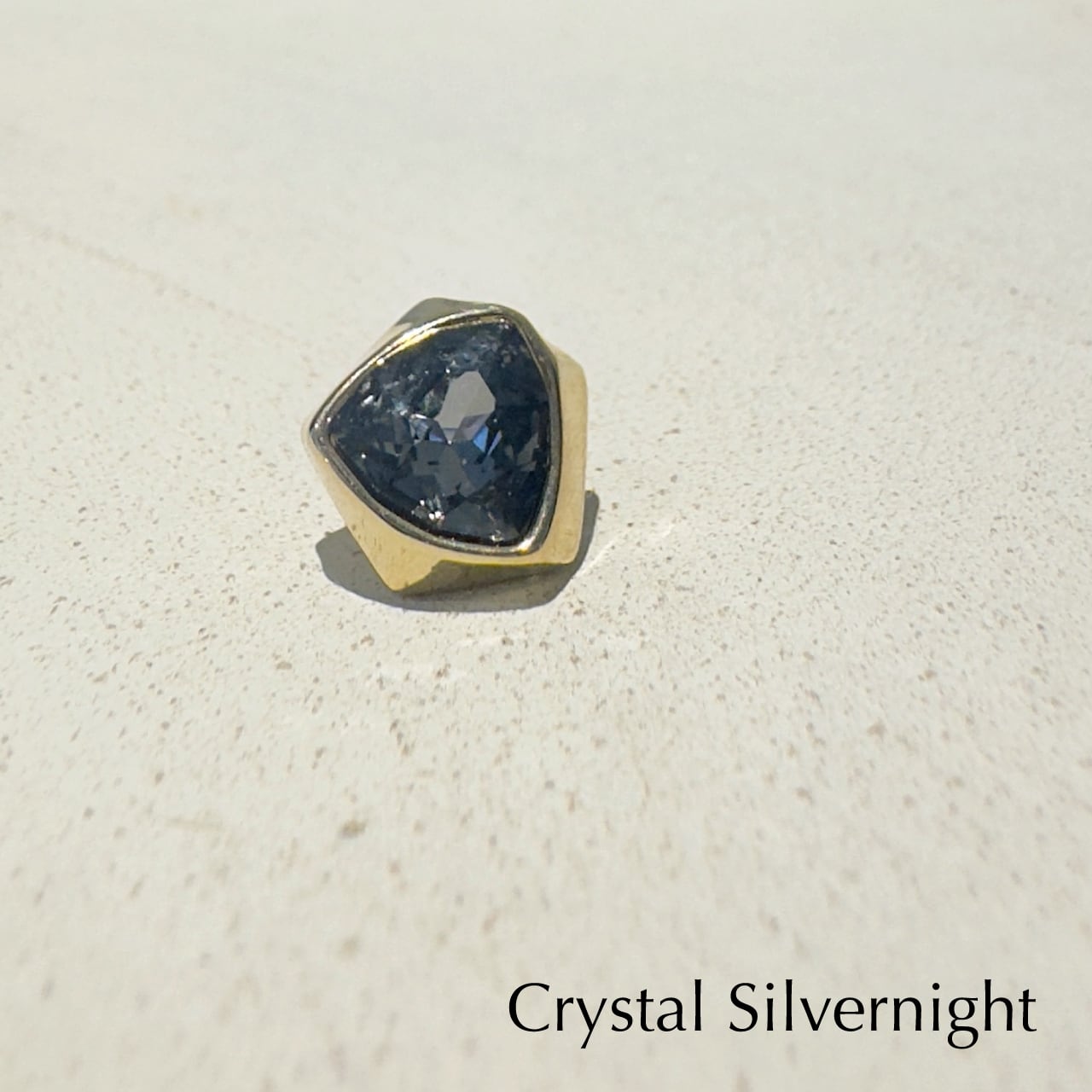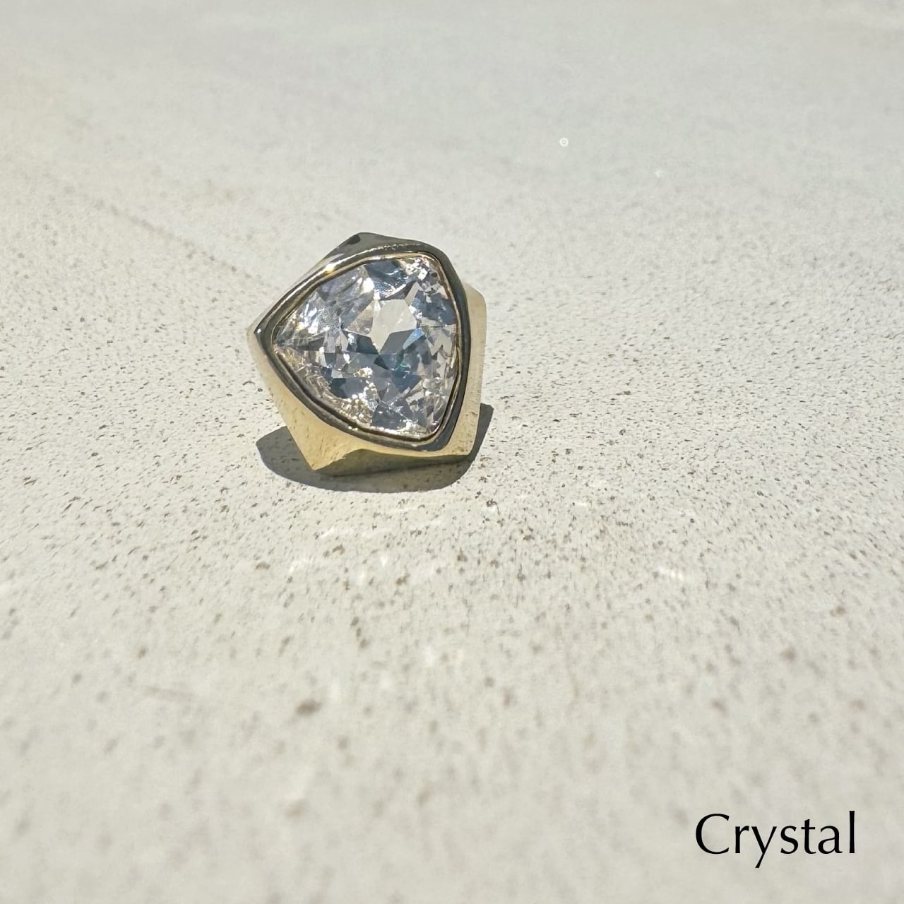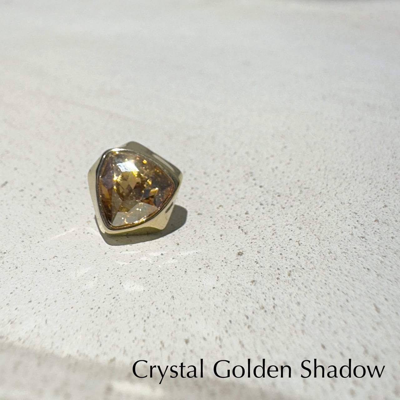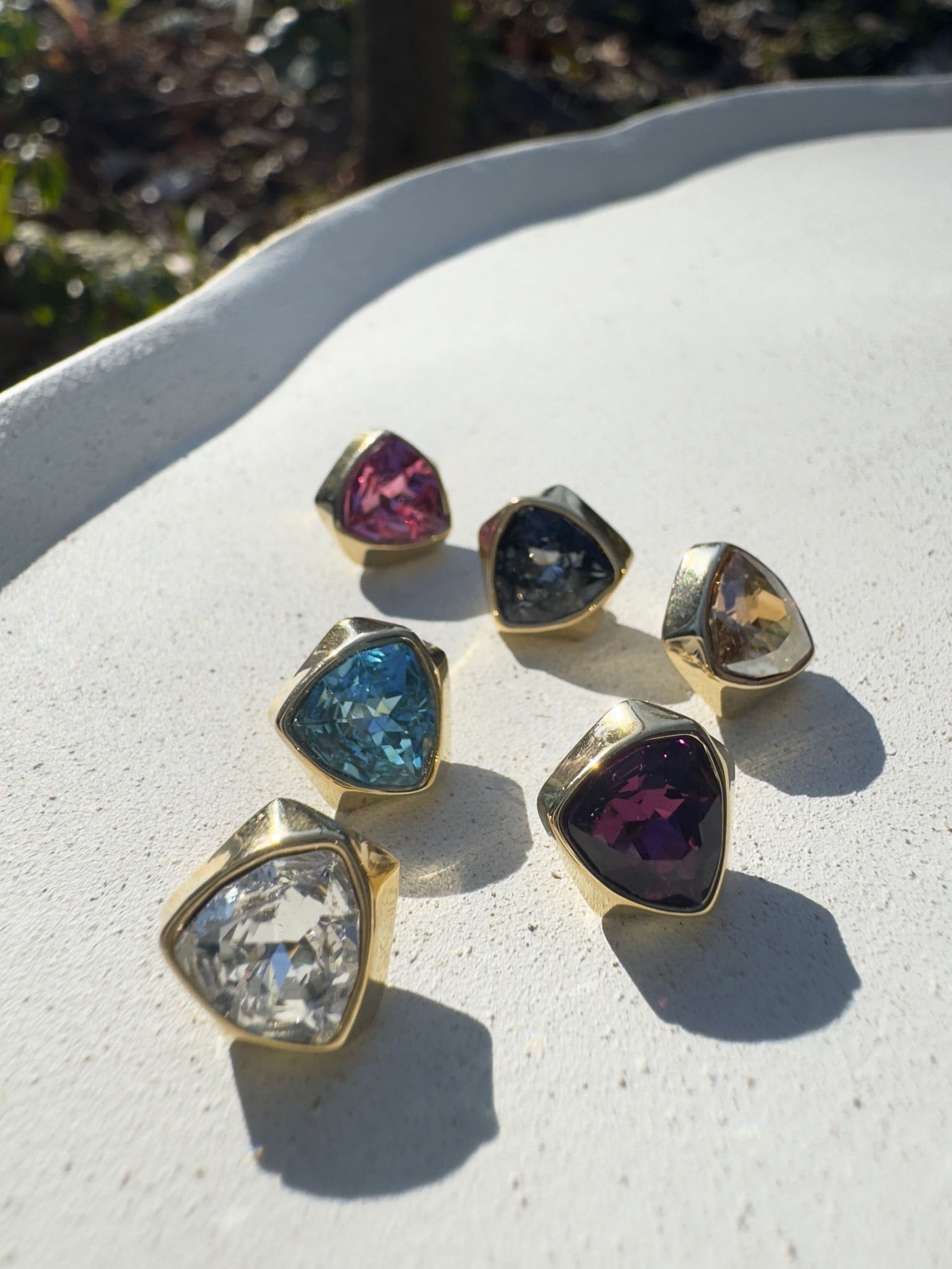 シャープな三角フォルムに、奥行きのあるクリスタルの輝きを閉じ込めた「Triangolo」。