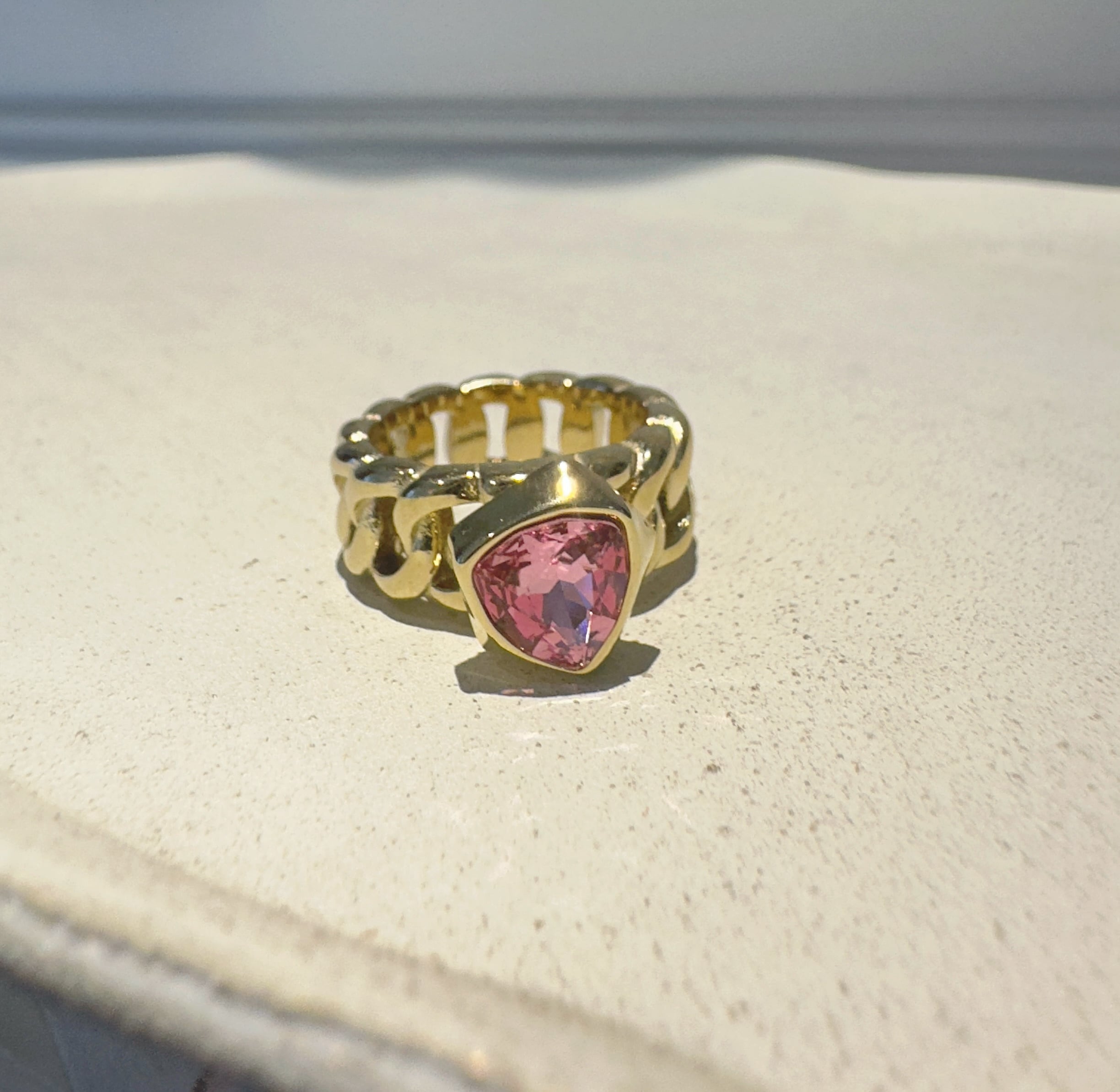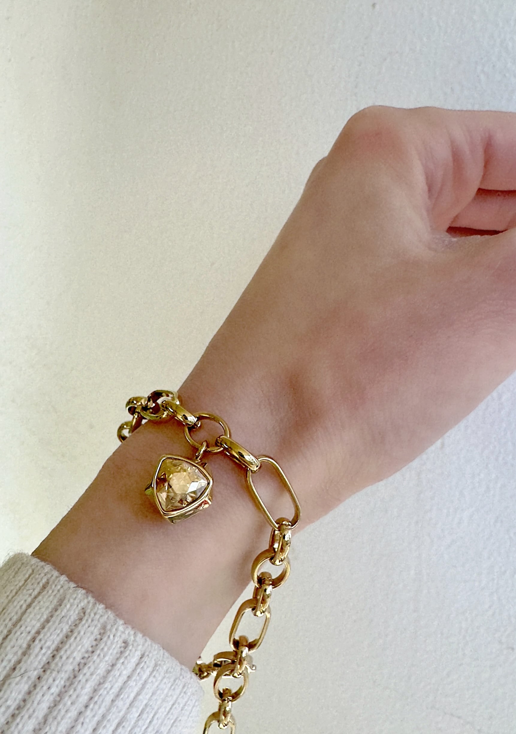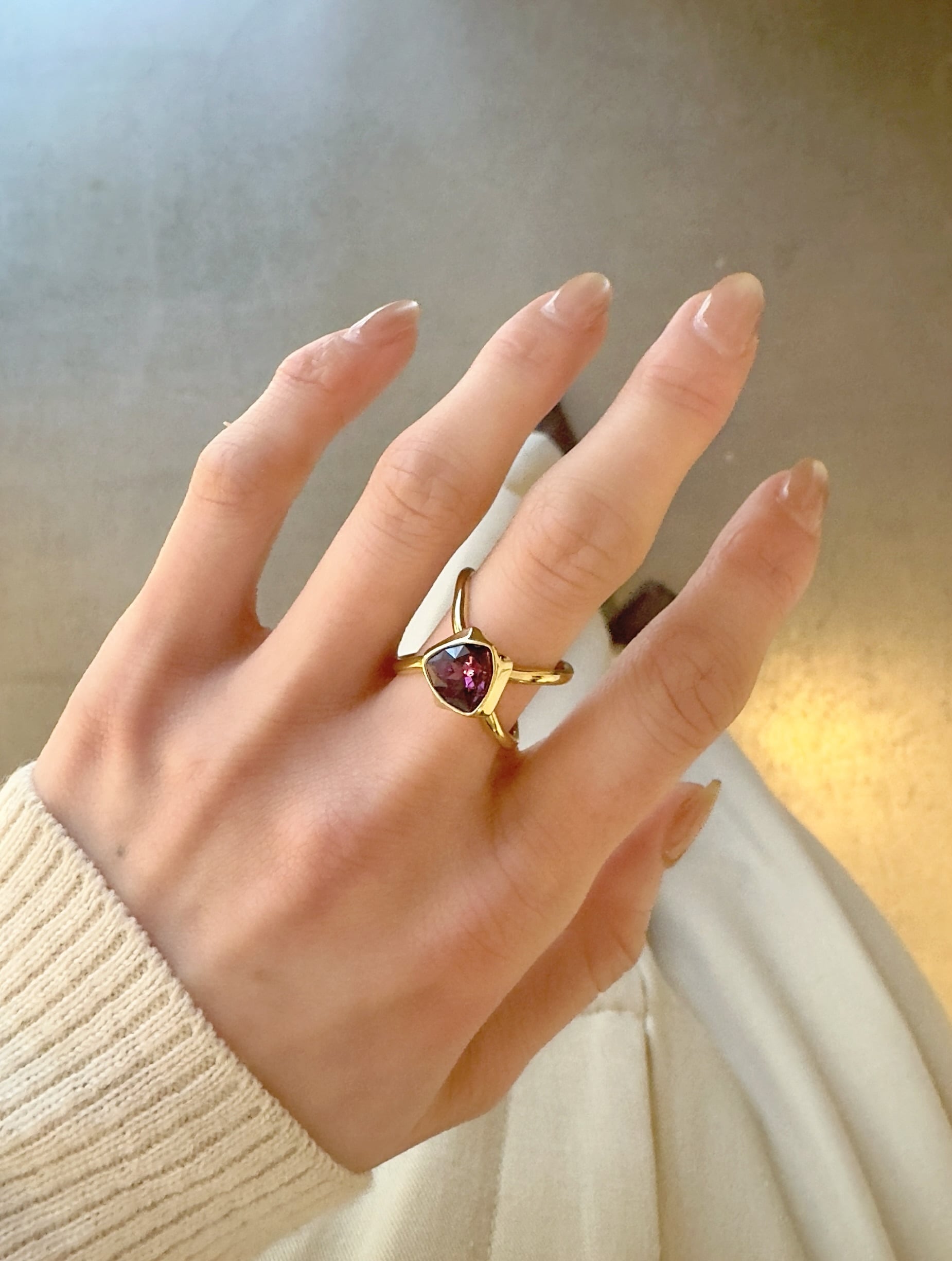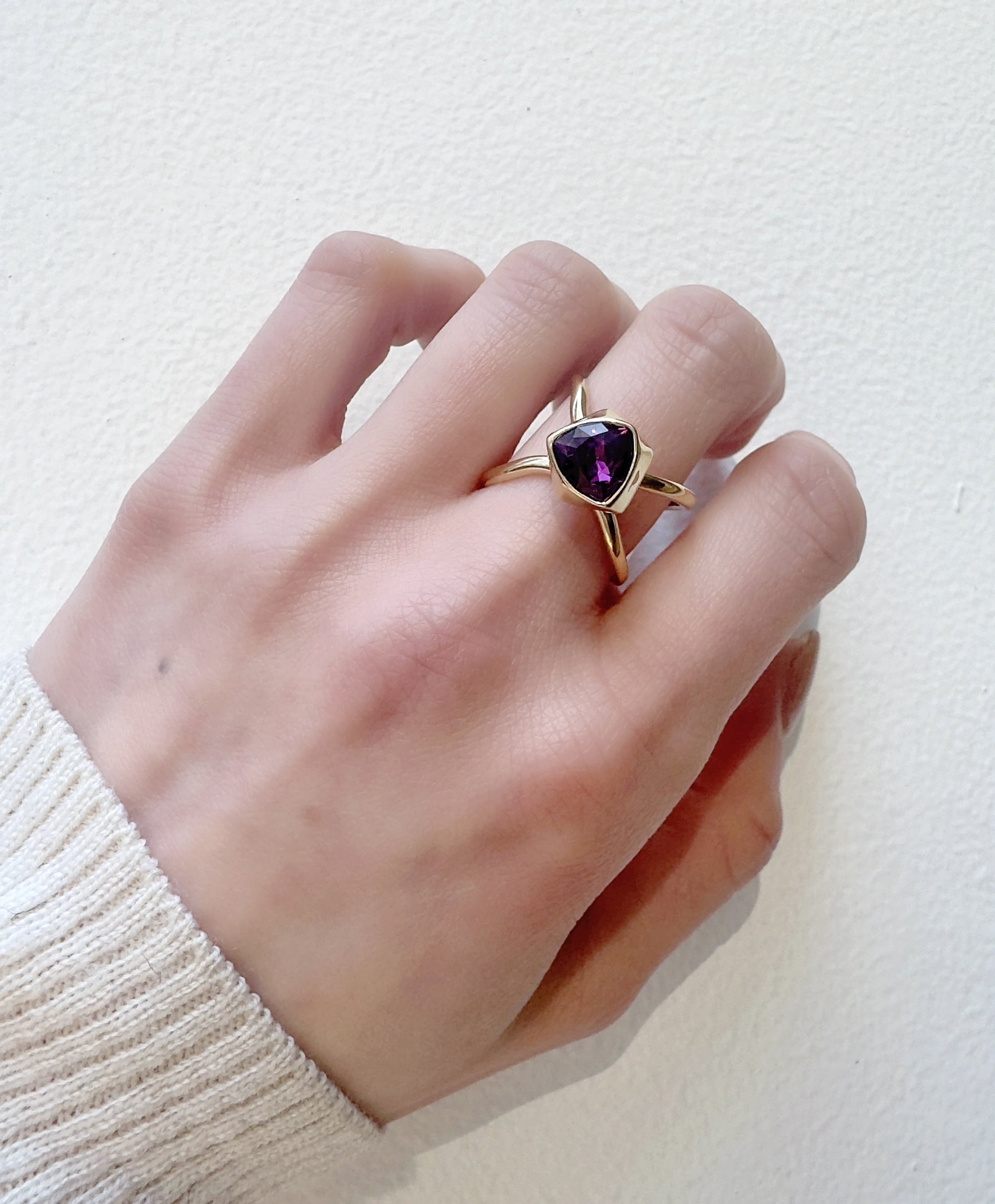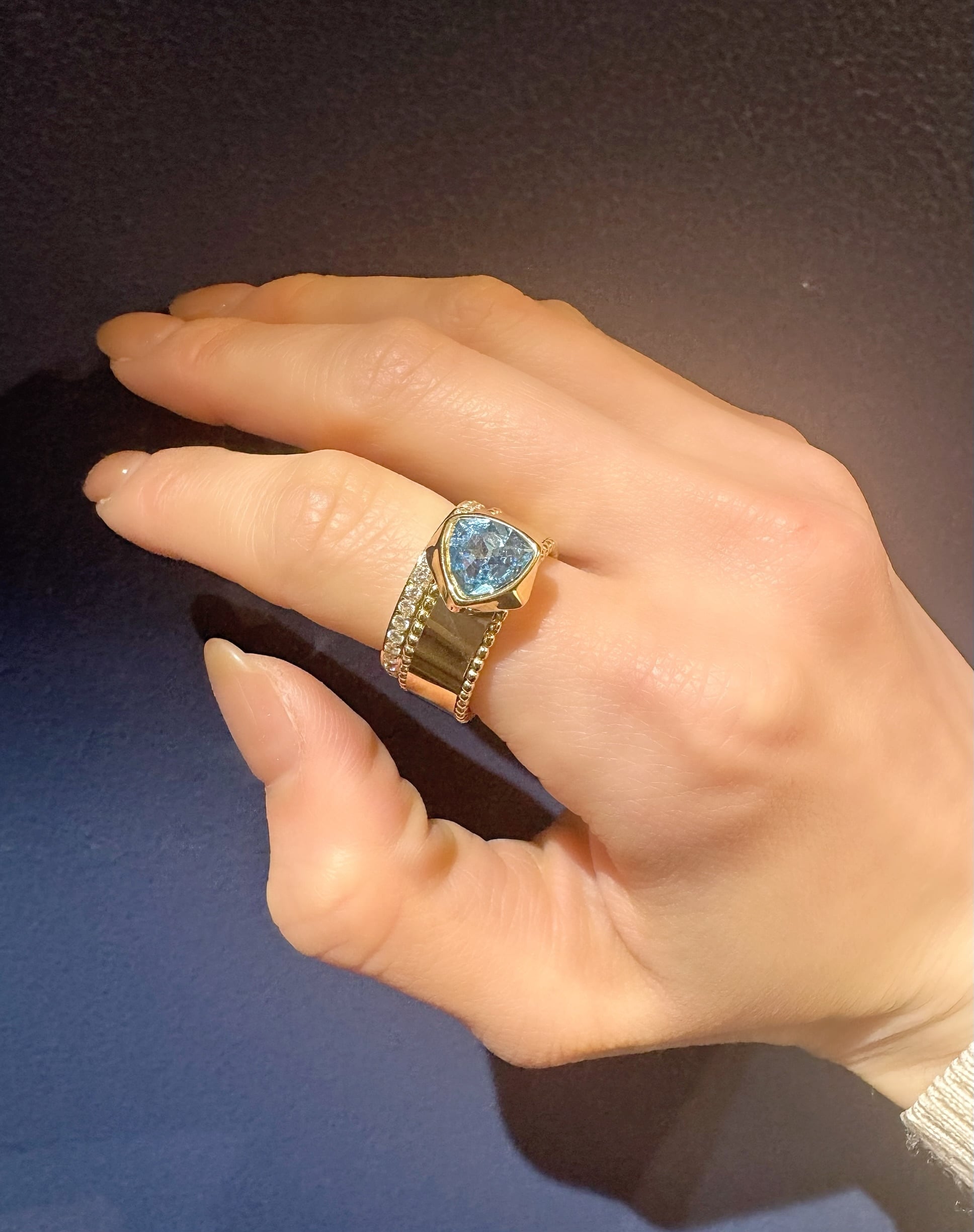 シャープな三角フォルムに、奥行きのあるクリスタルの輝きを閉じ込めた「Triangolo」。