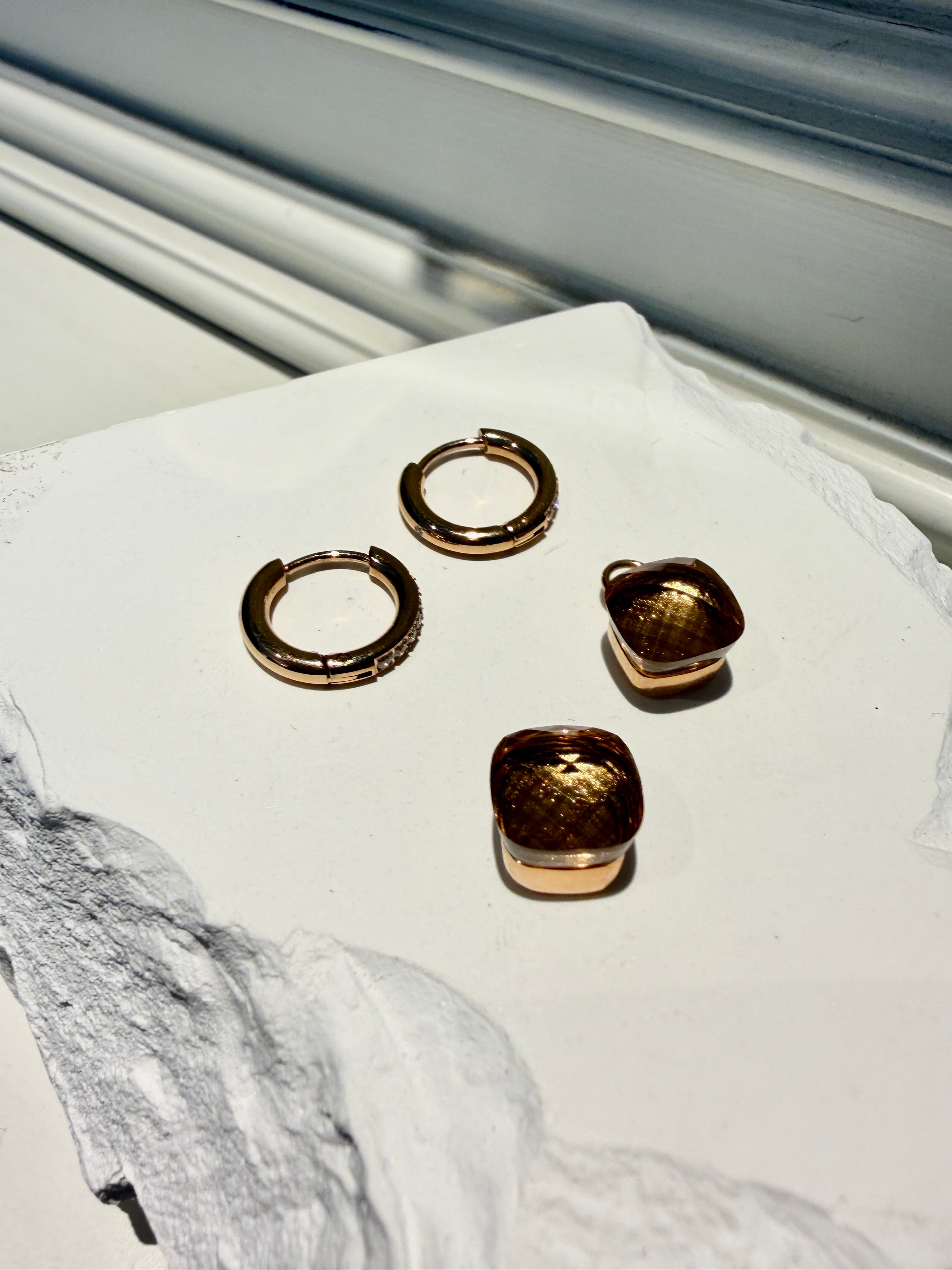 こちらのピアスは、FIRENZEチャームを外して、シンプルなフープピアスとしても使用できるので2WAYで使用できます。