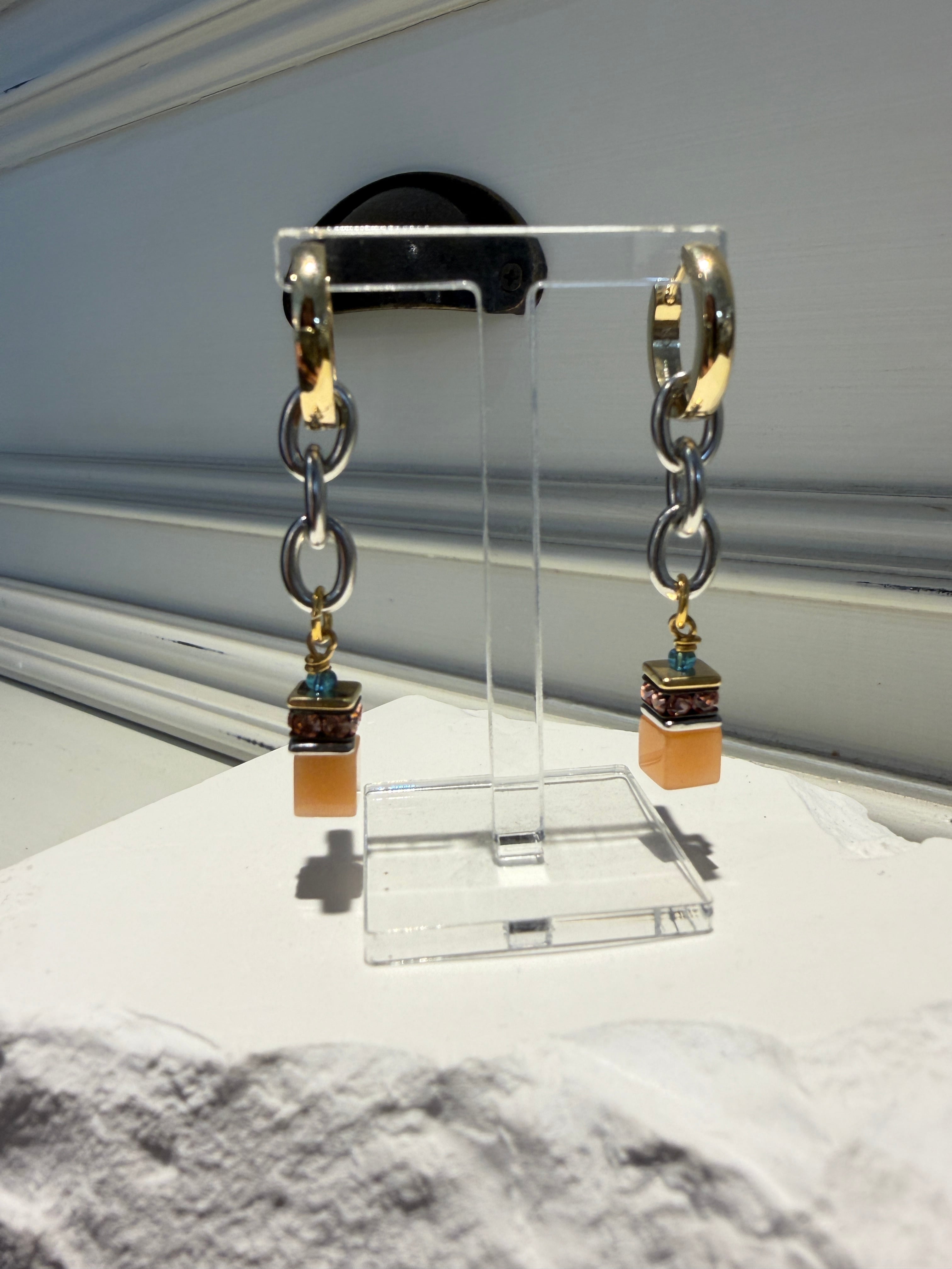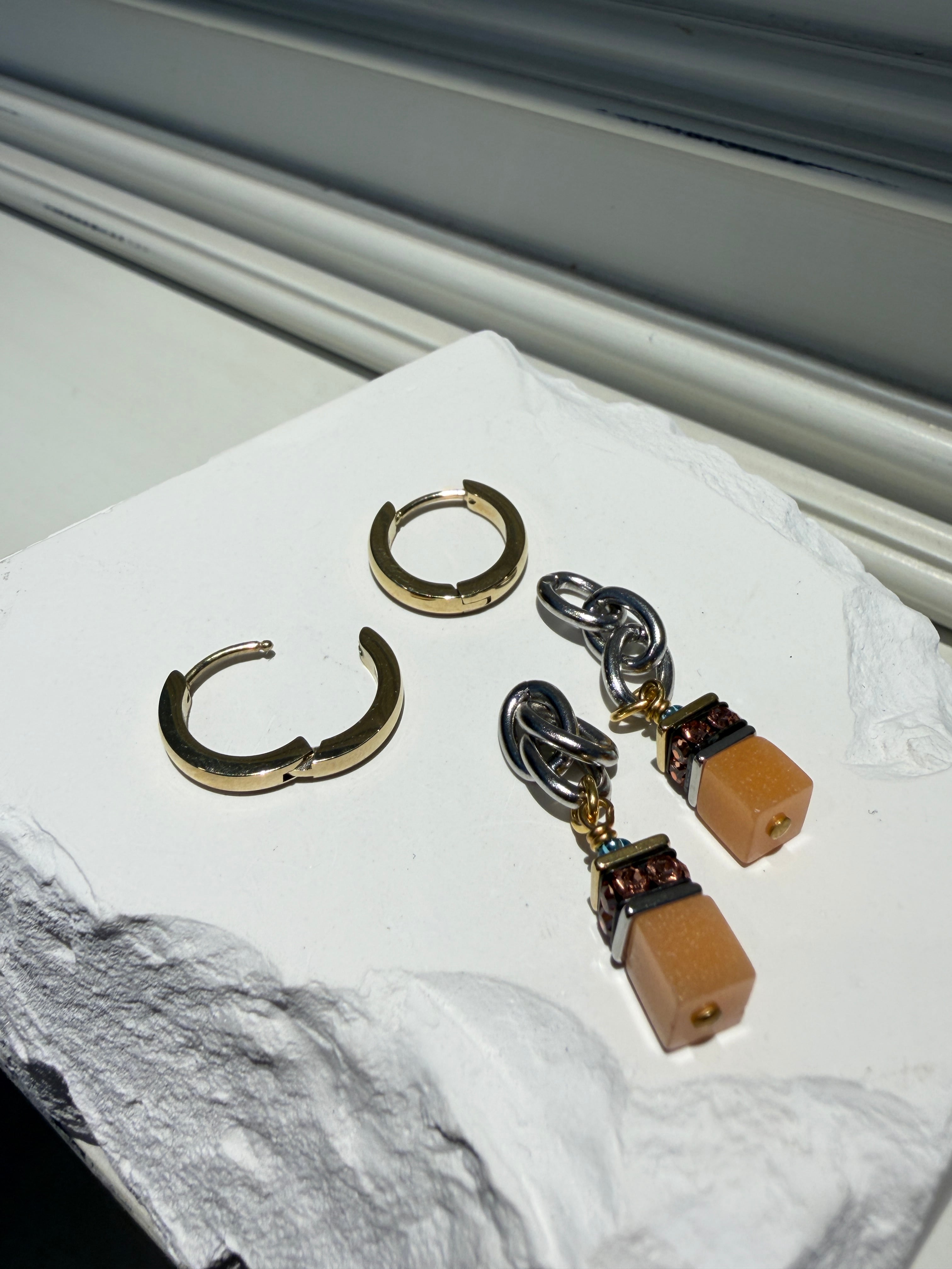 チェーン部分を外せばフープタイプのシンプルなスタイルで、2通りのデザインを楽しめるピアスです。ステンレスピアスは、プレゼントでも喜ばれます。