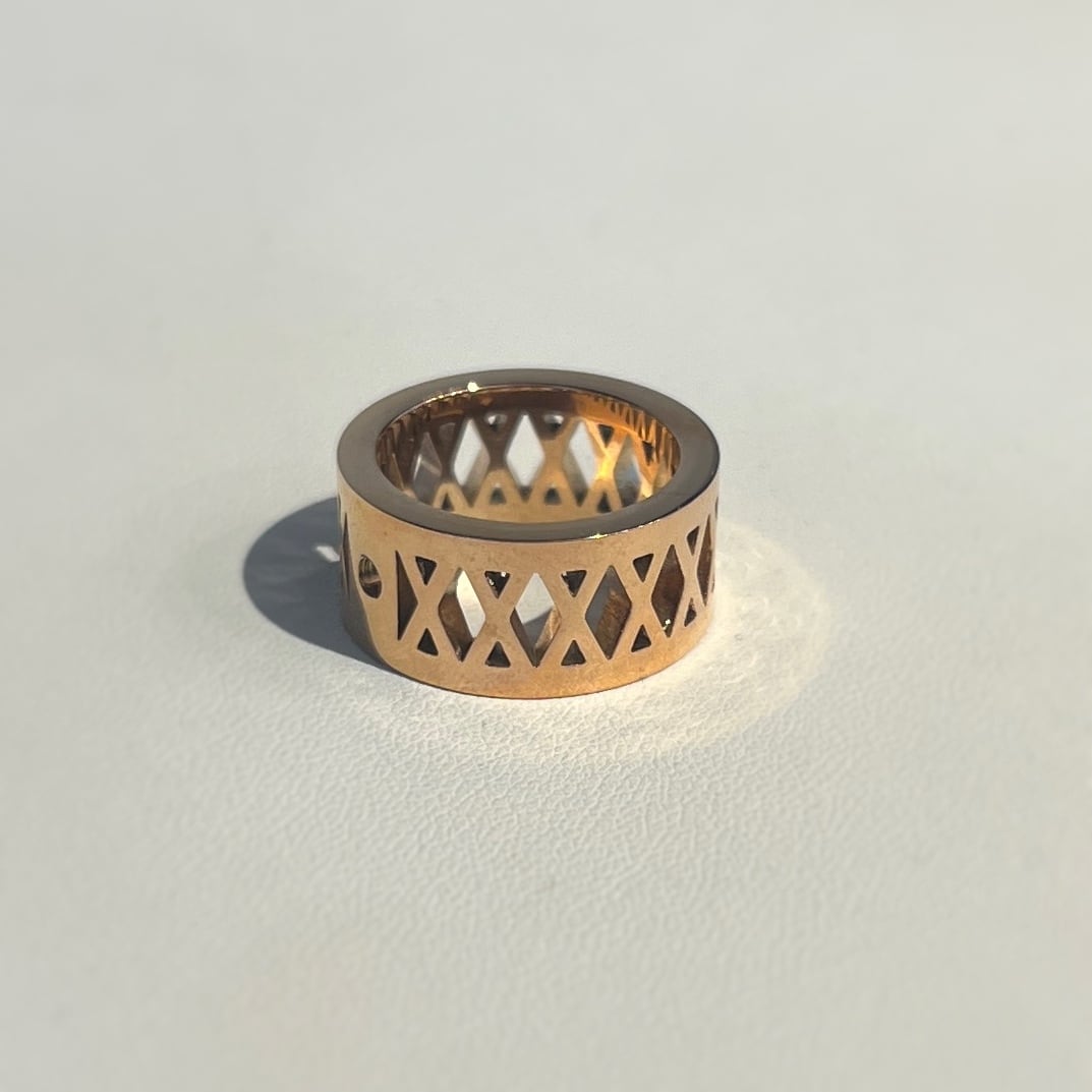 ※幅のあるリングの為、通常のサイズより若干きつく感じる事がございます。